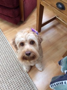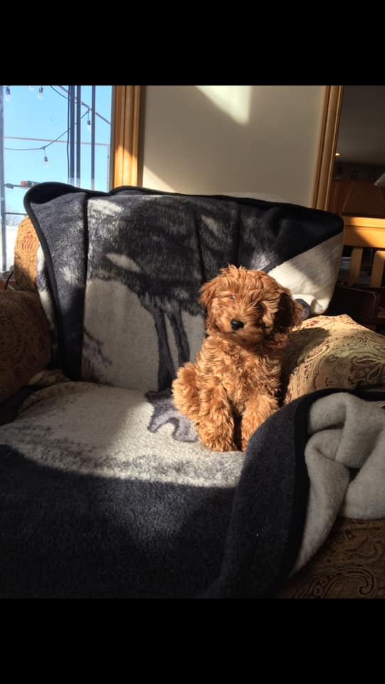 Hanging out with my sister’s dog Ivy, a Goldendoodle they got from you 2 years ago.
