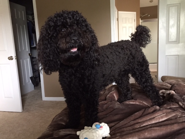 He is overall very healthy…..with the exception of a lump that the vet says poodles are prone to getting….he loves playing with kids and with his toys.