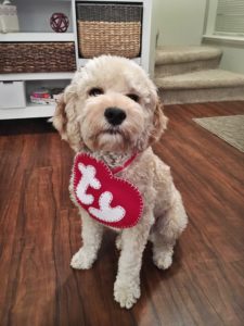 Wanted to let you know Vinny is doing great and he’s all excited for the Packer/Bear game on Sunday. We just love this guy so much. He’s been so easy to train and already sleeping in the kids bed. He loves long walks and cuddling on the couch. Thanks for breeding such sweet pups. Kelly Ballarini