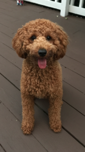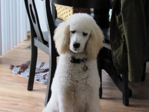 He was house-trained in about a month. He loves playing and relaxing in my fenced-in back yard, playing fetch and tug-of-war with me and with my five-year-old granddaughter, going for walks, having occasional back-yard visits with my friends’ dogs, sitting by my feet when I eat, sitting on my desk while I work on my computer. He sleeps with me at night and doesn’t move until he sees that I’m getting up. He and I both enjoy taking a good afternoon “cat” nap together.